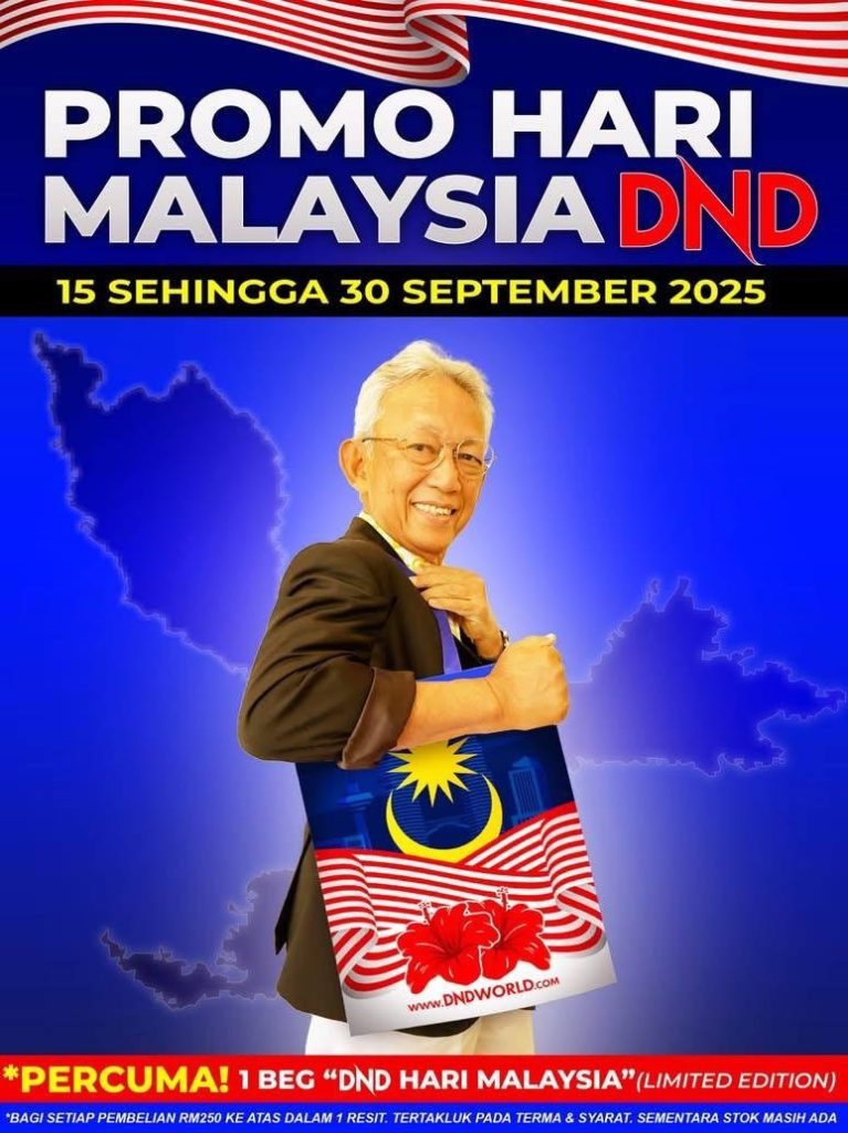 Jika order sekarang, kami akan beriHarga specialuntuk anda..!!! dan sempena PROMO HARI MALAYSIA DND 2025... anda berpeluang untuk mendapat 1 BEG PERCUMA IAITU BEG “DND HARI MALAYSIA” (LIMITED EDITION) bagi setiap pembelian RM250 dalam 1 resit…